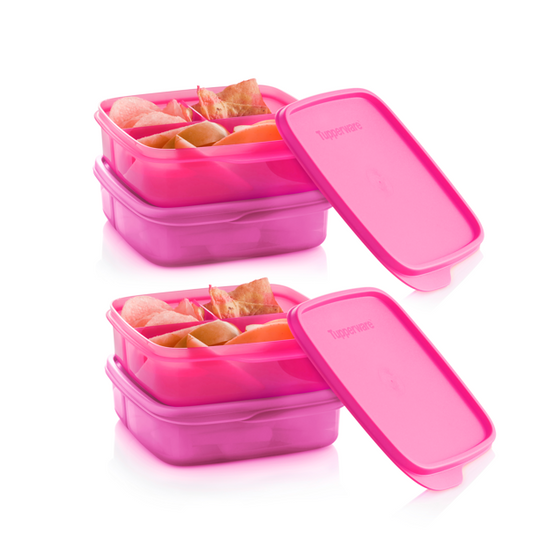 Tupperware’s Fun-Meal Box is a fun, practical, and sustainable way for kids to carry their lunches to school. Made with high-quality, durable material, it encourages re-use and reduces dependence on disposable containers. The large asymmetric tab makes it easy to open and close, while its stackable design allows convenient storage in cabinets or refrigerators.