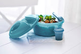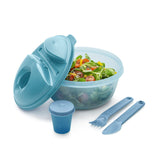 This unique salad container is ideal for use at home or on the go. Prep the night before and store your meal in the fridge, ready to grab in the morning. Designed for total convenience, the set includes a leak-proof bowl, a mini dressing container, and cutlery that snap together for neat and easy transport. Dishwasher safe and compact, it's perfect for a mess-free, organized lunch experience.
