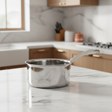 Features riveted joints, tempered glass lids, and a mirror finish exterior with a satin interior.
