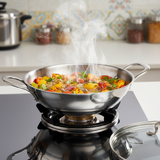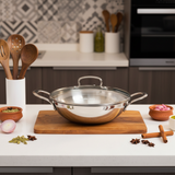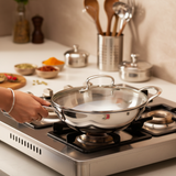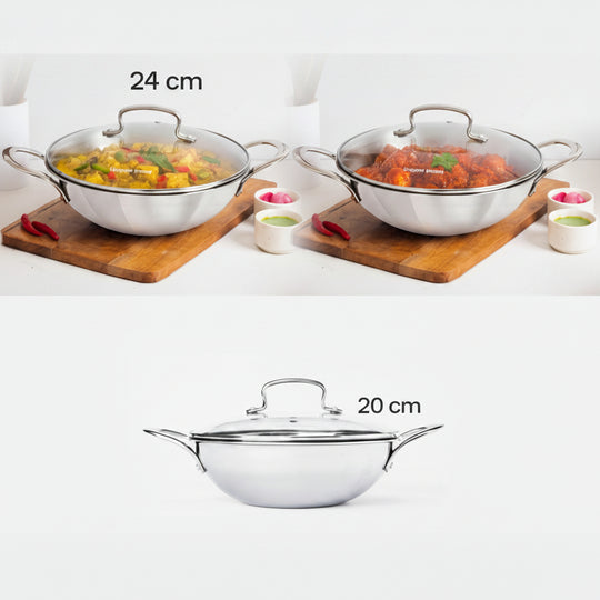 TRAYAM Tri-ply KADHAI 24CM WITH GLASS COVER LID (2.6 LTR) (2pc) + SMALL KADHAI 20CM-(1pc )